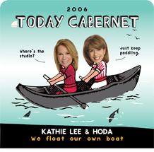 On two separate occasions our labels have been featured on the Today Show with Kathie Lee Gifford and Hoda Kotb. For the first of these features, our design team set about creating some unique labels designed to reflect the playful nature of the show's hosts. Subsequent to the show, two of the designs have been adapted and now form part of our regular line-up ("Canoe" and "Woman of the Year"). The other two designs featured on the show were not so easily adapted for general use but are well worth a second look.